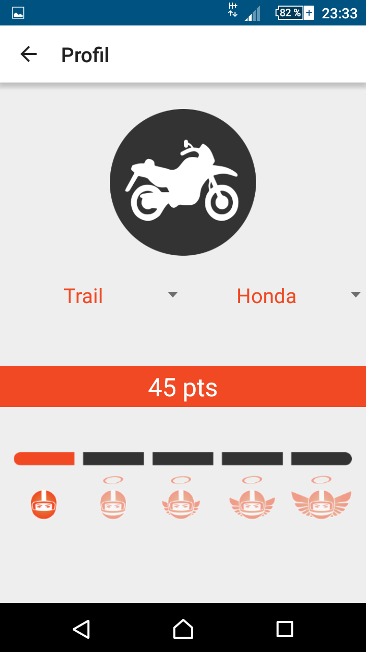 Voilà comment ça se présente, on choisis si on a un passager et si on veut activer le suivi GPS puis Go ! Le profil avec un système de points Le menu avec les contacts et paramètre de l'appli Le réglage du temps de l'alarme en cas de chute Liens vers le Google Store
