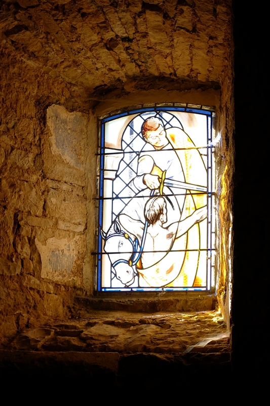 @Lippo: chapelle restaurée en 1999, et je pense que le vitrail a été posé après.