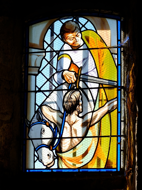 Le vitrail à l'air beaucoup plus récent que la chapelle si j'en juge le dessin de Martin et du miséreux (coupe de cheveux entre autres :] )