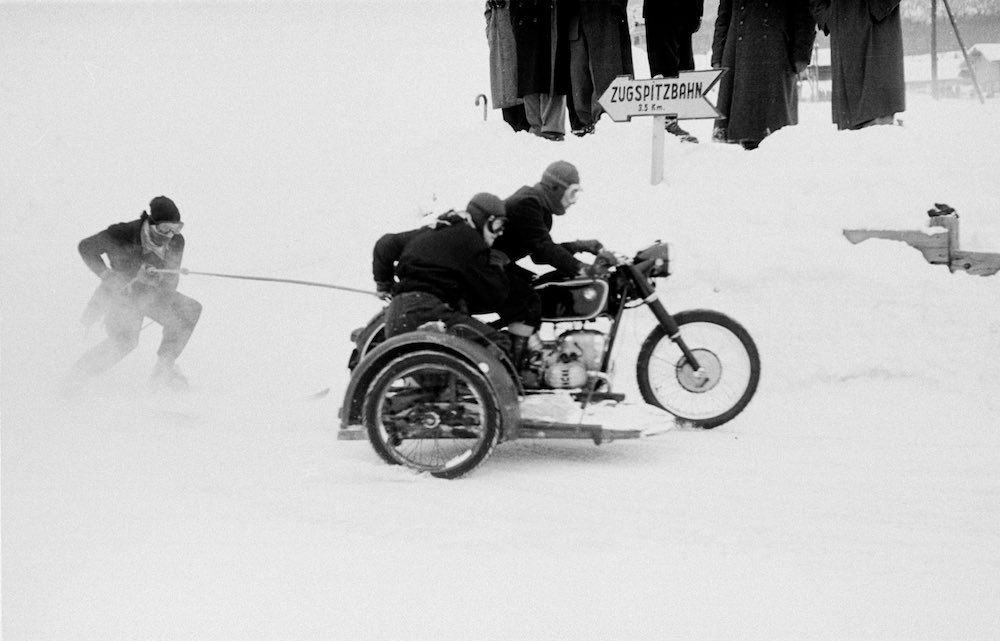 La photo étant prise en Allemagne (panneaux indicateurs) en 1953, je pense qu'il s'agit d'une BMW.