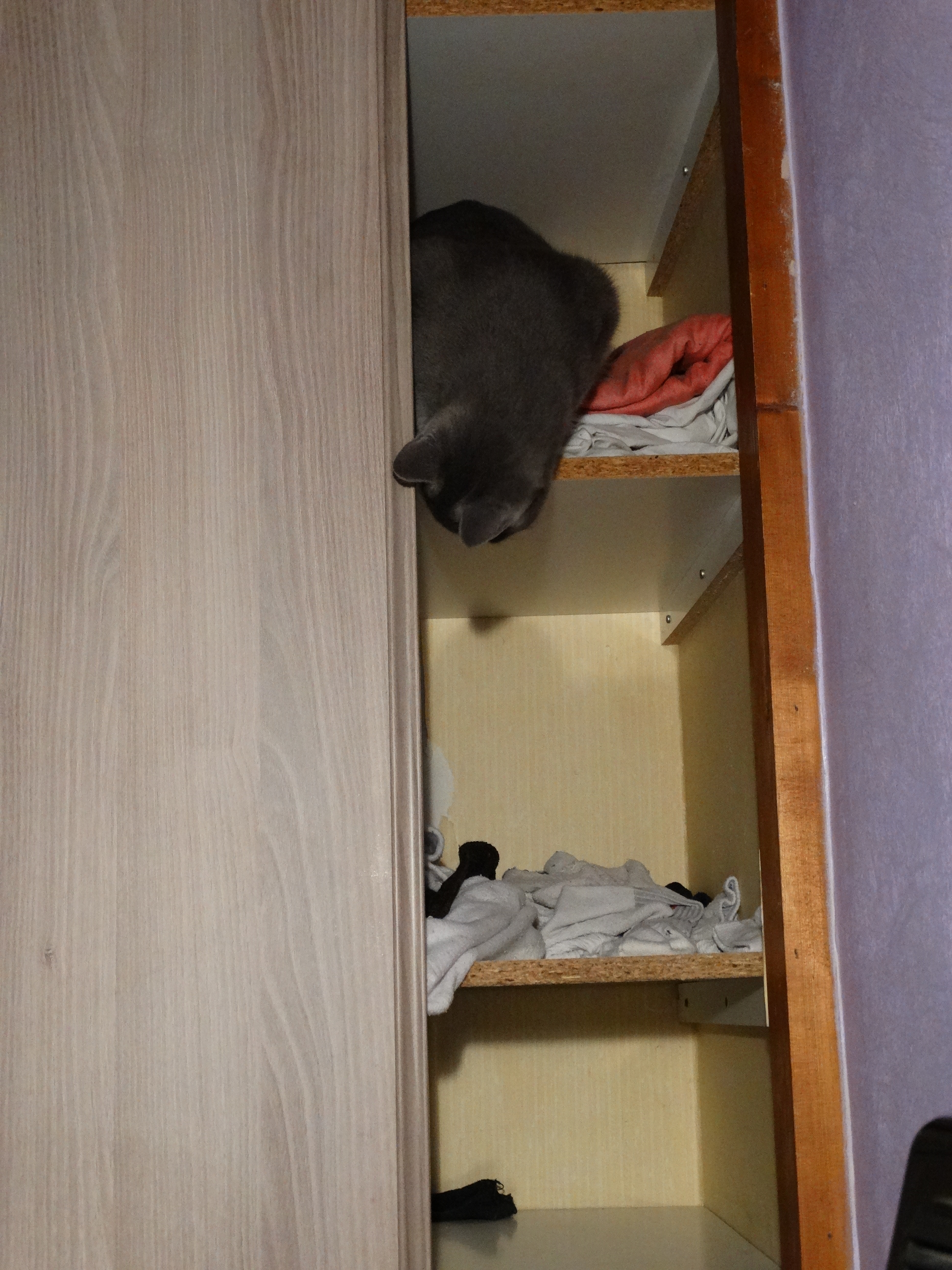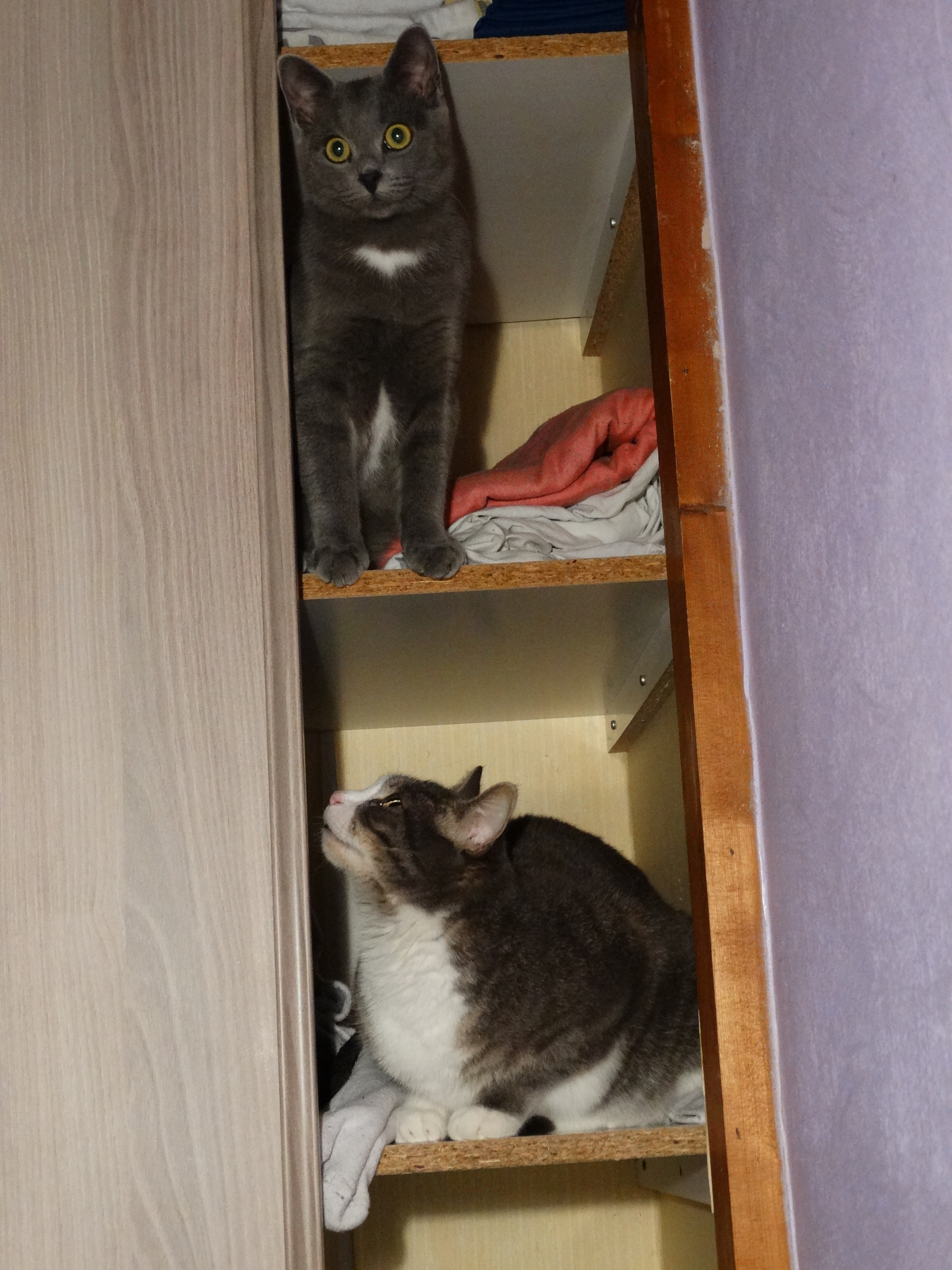 A la maison aussi ils font ça dans les armoires, même que dès fois, ils passent la journée dans le placard quand ma femme ferme sans les voir et que ça miaule le soir quand on rentre, tu vas m'dire qu'ils dorment là ou dans un canapé c'est pareil, faignants d'greffiers... ::d
