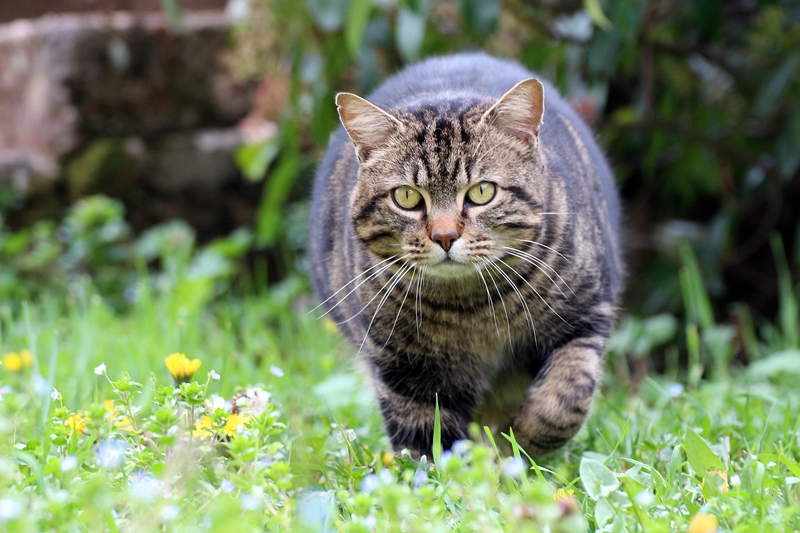 Il a un bon fond, il joue avec les mulots et il les relâche...alors courir après un piaf..